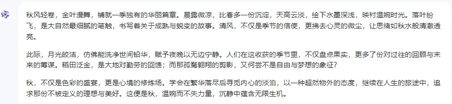 连做了几题后,我觉得它是累了,开始了现代散文风。 于是,我们重新开始,新建对话后它又回归了: