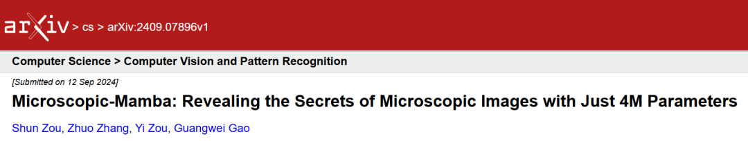 该研究以「Microscopic-Mamba: Revealing the Secrets of Microscopic Images with Just 4M Parameters」为题,于 2024 年 9 月 12 日发布在 arXiv 预印平台。