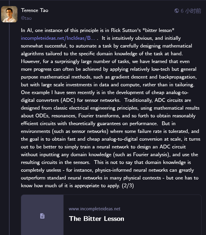 刚刚,著名数学家陶哲轩在个人社交平台更新的几篇帖子,引起大家广泛的共鸣。
